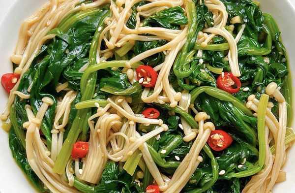 这道清爽可口,让我百吃不厌!!一定要试!凉拌菠菜和金针菇的搭配,新鲜又美味!解腻爽口,酸辣清爽不油腻!