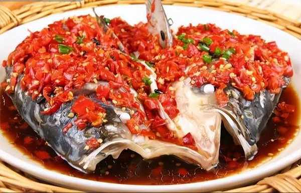 鱼头酒在湖南没办法进行,主要的原因就是因为这个鱼,只有鱼头,蒸好的鱼头调制上剁辣椒,酸辣可口,鱼肉细嫩,一点没有腥味,这道菜也是湘菜的代表。