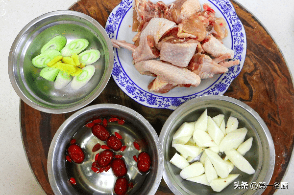 4、然后将鸡块倒入砂锅中,加入适量开水,盖上鸡肉,煮沸后转小火煮半小时,然后加入山药、红枣和枸杞,继续炖5分钟。