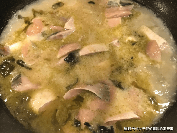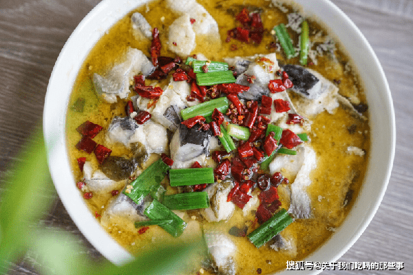 3、倒入清水煮5分钟,酸菜酸味出来后捞出酸菜放入碗中,把鱼片一片片放入汤中煮熟,捞出放在酸菜上,倒入汤汁。最上面放葱花、干辣椒、干花椒,用了热油泼一下,激发出香味后就可以了。
