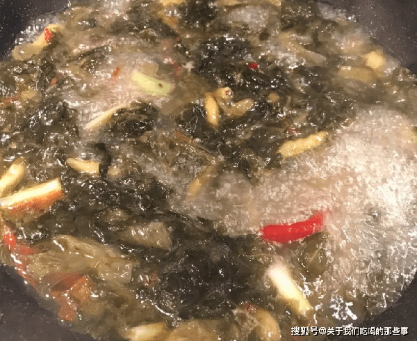 2、姜切片,葱切段,泡椒切段,小米椒切圈、干辣椒切段。酸菜洗干净,用刀切段。起锅烧油,倒入葱姜、泡椒、小米椒炸出香味,倒入泡菜大火翻炒2分钟。
