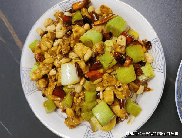 3、锅里重新加油,中火烧至六成热时倒入腌好的鸡丁,翻炒至变色后捞出沥油。锅里留底油,烧热后放入葱段、干辣椒、姜蒜末爆香,倒入鸡丁翻炒均匀,倒入料汁勾芡,翻炒至汤汁浓稠后倒入花生米,翻炒均匀即可出锅。
