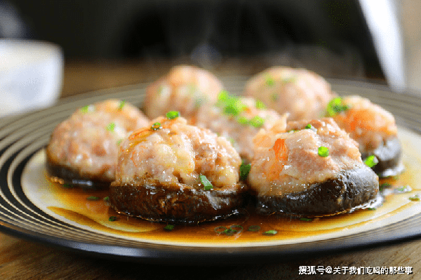 2、香菇里撒一点干淀粉,把虾泥搓成小球,放在香菇上,用手捏紧,放入盘中,上蒸锅蒸8分钟,取出后撒上葱花,用热油泼一下即可。