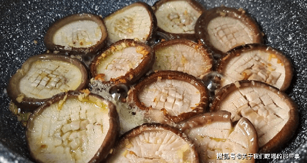 2、碗里加入适量食盐、生抽、老抽、蚝油、淀粉、白糖、鸡精、清水,用筷子搅匀。起锅烧油,放入香菇小火煎至两面金黄,放入姜蒜末炒香。