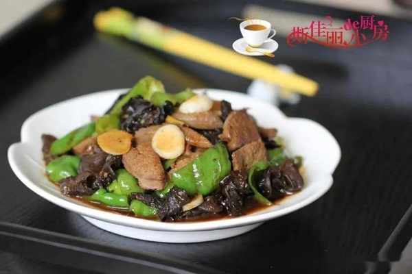 制作:猪肝片中加入少许盐、料酒、生抽和淀粉等调味料, 搅拌均匀腌制一下;调制好碗汁:盐、蒜片、姜片、 料酒,生抽、和淀粉,再加入少许水拌均匀。烧锅水将泡软的黑木耳放锅中焯煮上两分钟捞出备用,再将猪肝放入锅中烫变色捞出。烧热锅放入适量的油,将猪肝放进锅中翻炒两下,加入准备好的黑木耳和青椒片一起翻炒, 倒入准备好的碗汁,焖煮两分钟后大火收汁即可。