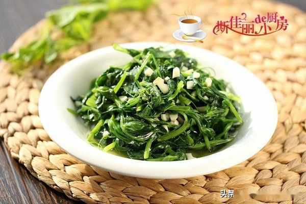 制作:烧热锅放入少许油, 放入蒜粒煸炒出香味,将洗净的豌豆苗进去翻炒至微微变色,加入1勺糖翻炒均匀,再加入少许盐翻炒均匀即可。