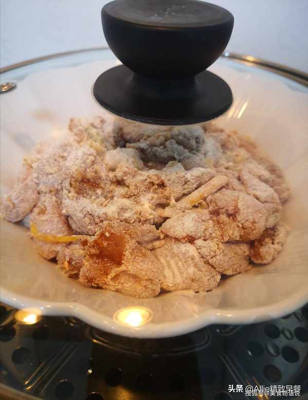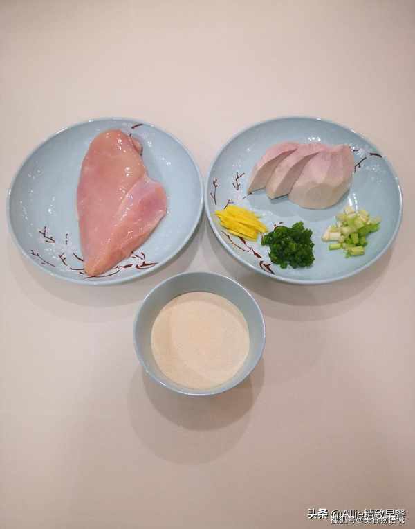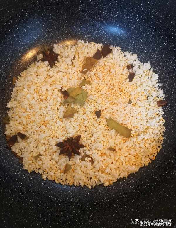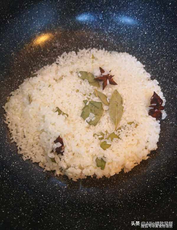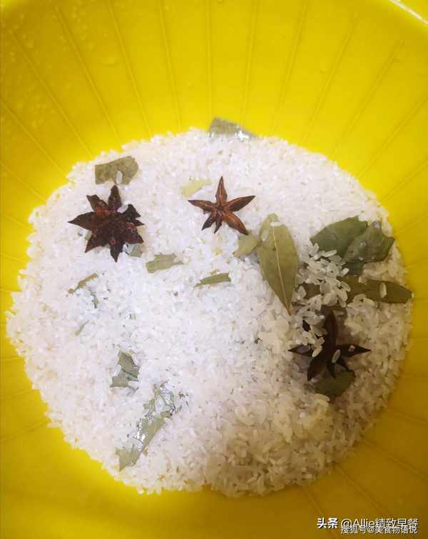 【成分详情】鸡胸肉、米饭、八角、月桂叶、芋头、葱、姜、生粉。调料:盐、生抽、老抽。【实践】在米饭中加入一些八角和香叶,洗净并控制湿度。