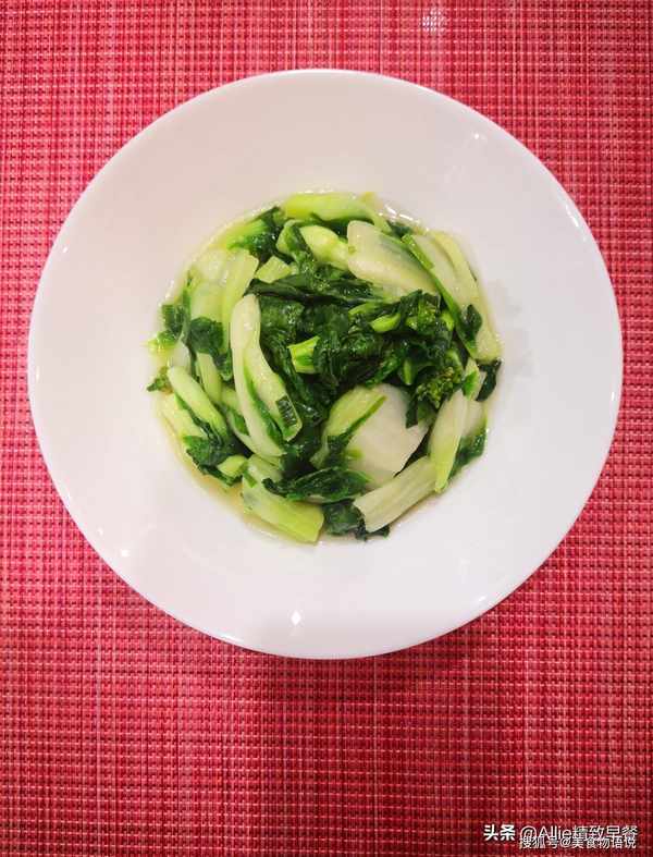 白菜芽,大葱。调料:盐、油。【实践】油热后倒入葱圈翻炒出香味,再倒入菜苗,加少许盐,翻炒至烂。
