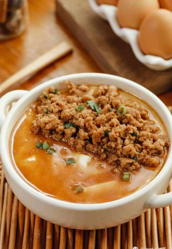 这样一碗肉末豆腐蒸鸡蛋,富含优质蛋白质,容易消化吸收,营养可以放心。