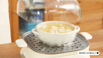 *还有要注意的是,豆腐碗里的水不要放太多,不然蒸一会就不容易成蛋羹了。