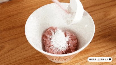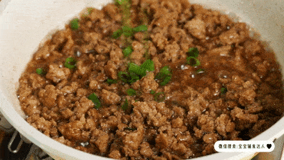 肉末加入淀粉、2勺酱油和适量鲜香菇粉调味。要做酱子,调料恰到好处,不咸不淡。