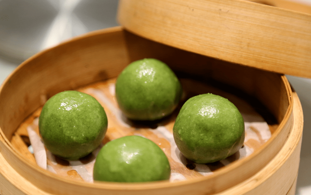 青团油绿如玉,糯韧绵软。蒸熟以后绿绿的松软的皮儿,豆沙馅心甜而不腻,带有清淡艾草香气,香糯可口。