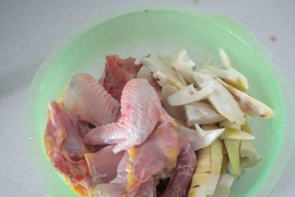 土鸡和竹笋洗净