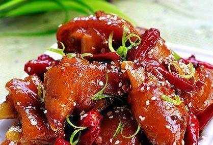 猪蹄,青红辣椒,豆瓣酱,姜片,耗油,老抽,几块冰糖。