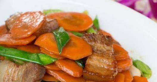 4.两次煮熟的猪肉片,萝卜片,芹菜切成薄片。