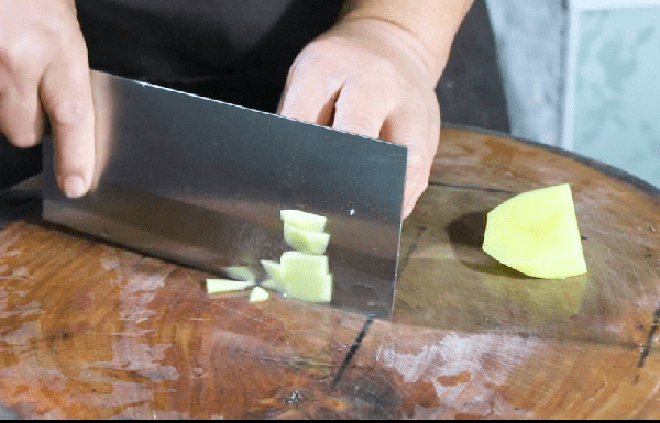 4.姜切片,大蒜切碎,前腿牛肉切碎(前腿牛肉应该是软的,我建议使用前腿牛肉)