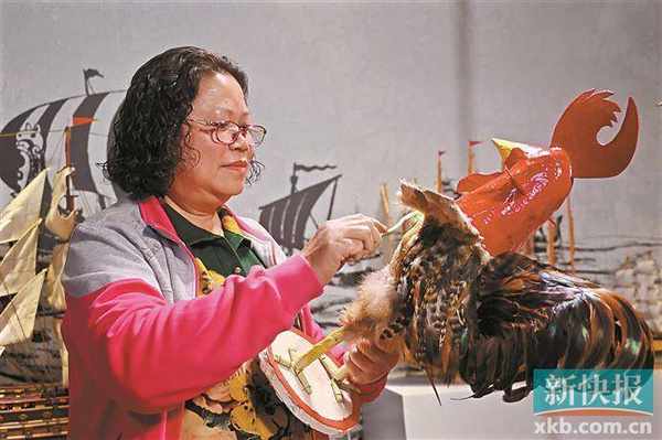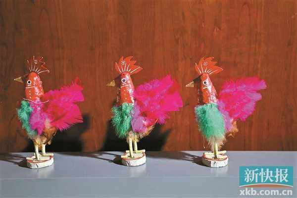 平日里,英姐负责波罗鸡各个部件的制作和组装,而上色则由丈夫协助完成。其中最辛苦的一环就是蘸粉,每蘸一次就要拿出去晒,晒完再蘸,弄得腰酸背痛。而最麻烦的是染鸡毛——买来颜料后放到锅里煮开,再把鸡毛放入锅里染,经过数次微调,才能调到好看的绿色。“原材料也并不好找,像禾秆、鸡毛等材料要去清远、肇庆那些地方拿。”英姐表示,“虽然麻烦,但我想做,也相信自己能做得好。我希望更多年轻人了解波罗鸡背后的故事,支持这项民间手艺,将传统文化传承下去。”