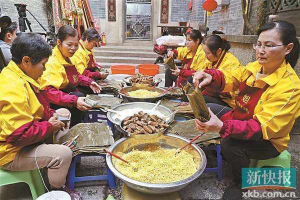 2月16日,黄埔区张氏大宗祠,彩姐正在制作波罗粽。
