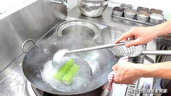 锅内烧水,等水烧开以后,把苦瓜放入锅中焯水,时间大概再30秒即可。焯水完成后,把苦瓜捞出,快速的用凉水冲洗几下,以免苦瓜回软,口感不够清脆。