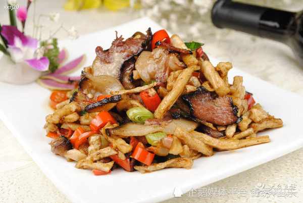 1.老腊肉煮熟后,捞出来切成片;老南瓜削去皮后,切成厚片投入色拉油锅里,炸至断生便倒出来沥油。