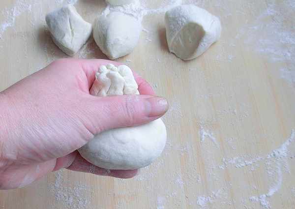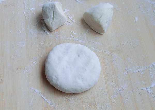 6.将醒发好的面团用力搓揉几分钟,分成大约核桃大小的剂子,用擀成皮