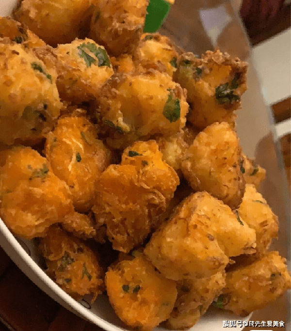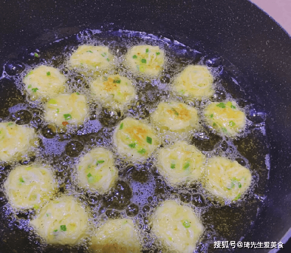起锅热油,油温6成时放入丸子,小火慢炸,一定一定要小火,不然待会丸子的表皮都焦了,里面还不熟,小火慢炸,让丸子从外到内都受热均匀,炸至金黄色即可捞出控油,开吃啦