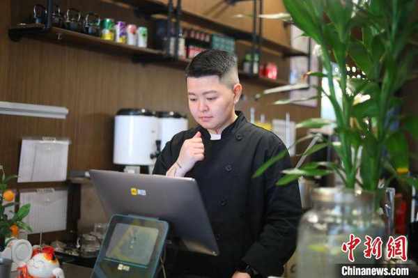 (图为正在餐厅里工作的李意羚。 梁钦卿 摄)