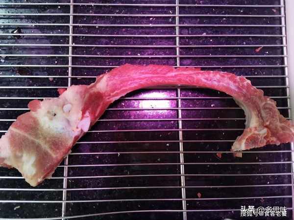 2,看肋排的弯曲弧度,猪的整扇排骨,分别是两头小中间大,所以前排的弯曲弧度是最大,也是最弯的