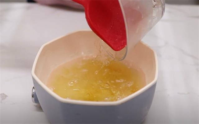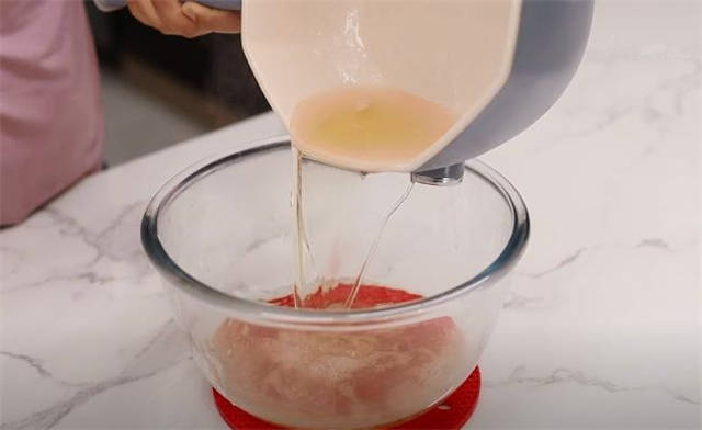 9.想吃其他口味的棉花糖,可以添加一部分的果汁,或者是想要颜色更好看一点,就用食用色素,简简单单的步骤,就能做出完美的棉花糖,喜欢就自己在家试试吧。