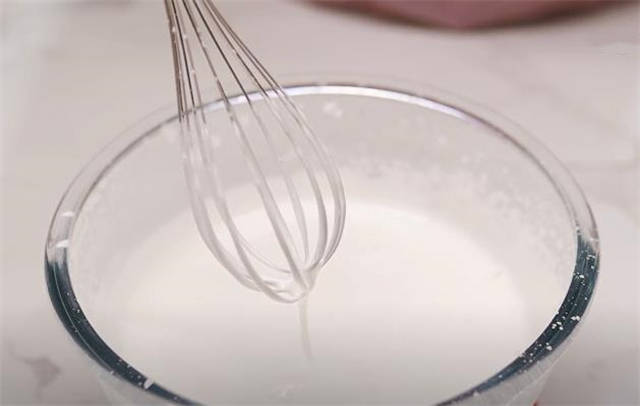 6.最后一直打发到非常粘稠的状态,它这个有点像奶油,但是你提起来,滴落的东西就会很容易的融进去。