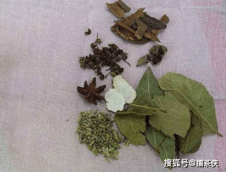 第二步,当然不用完全根据食谱中的,家里有什么放什么便可以了,然后将所以的香料全部都放入在一个纱布中或者是调料盒中,将纱布系紧一些,然后在锅中添上稍微多一点的水;