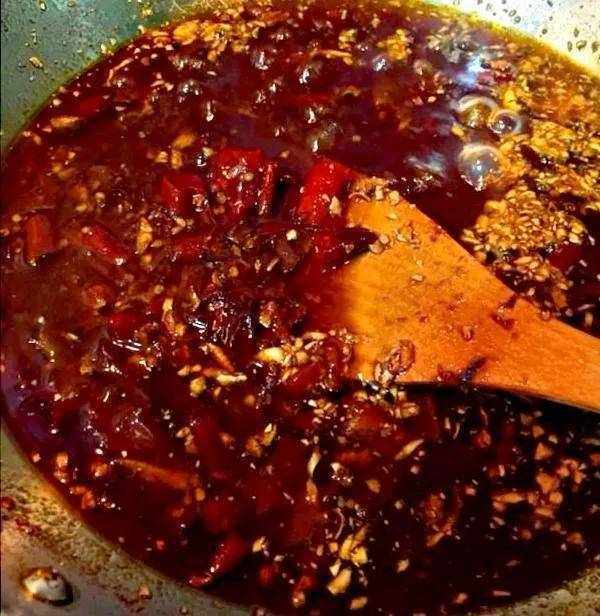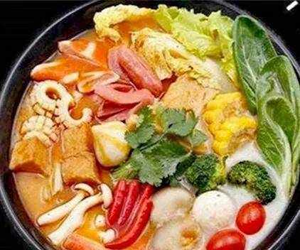 然后根据比例把底料加到大骨烫锅里,这时候开始制作麻辣烫。