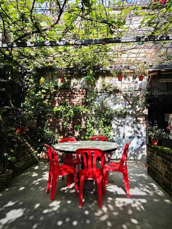 一进来我就选在葡萄树下坐了,非常的阴凉