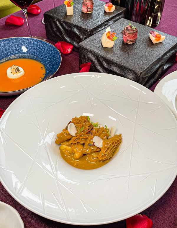 ▪️干式熟成金钱肚配龙虾鱼白子脆骨配特制法式白酱佐古斯古斯