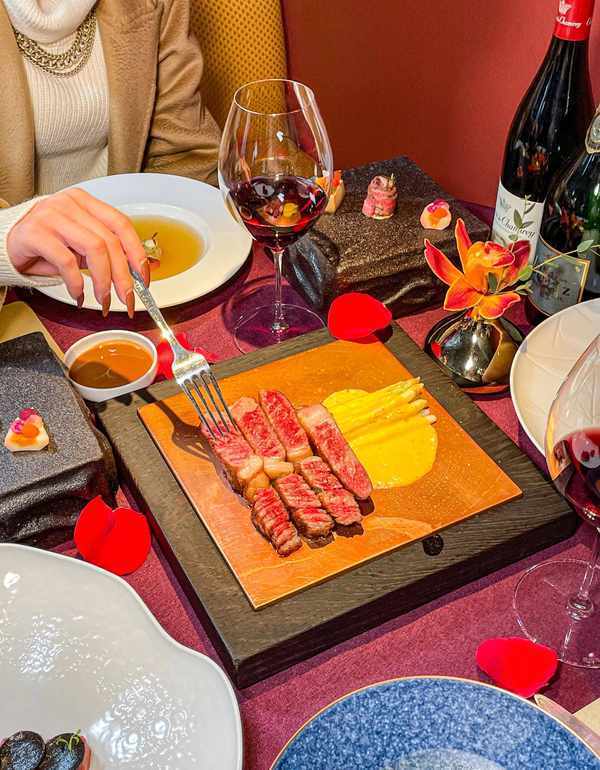 ▪️Josper炭烤澳洲INFINITE-M9+级谷饲500天纯血和牛眼肉+配法式野酱汁佐低温沙巴翁白芦笋