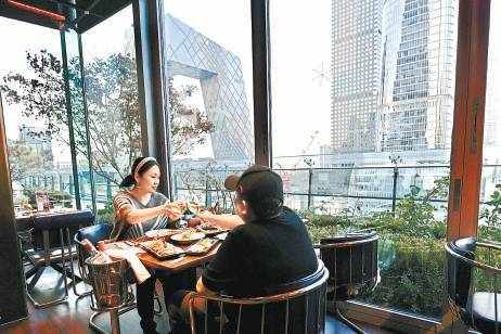 国贸一家餐厅,可俯瞰CBD美景。本报记者 程功摄 上榜餐厅全国各区第一