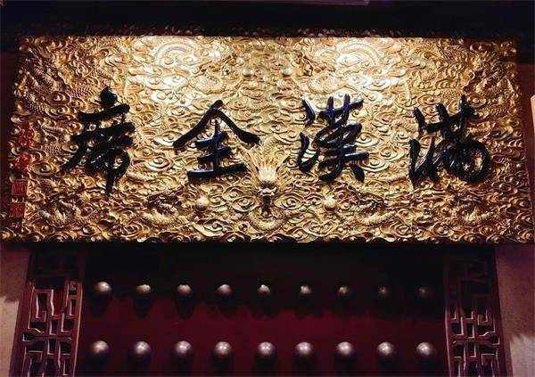 横匾是老舍先生亲笔“仿膳”,两边则是傅杰的手书“宫廷风味仿膳饭庄”。一进门,玄关处的条案上便是福禄寿三星。宫灯高挂,藻井生辉,包间只有四个,散座则有两处,一个在仿古殿内,一处在玻璃天棚下。仿制的龙椅金碧辉煌,真正的精品则是挂在墙上的字画,虽然不是石渠宝笈中的国宝,但却是上个世纪八十年代书画家们的真迹。