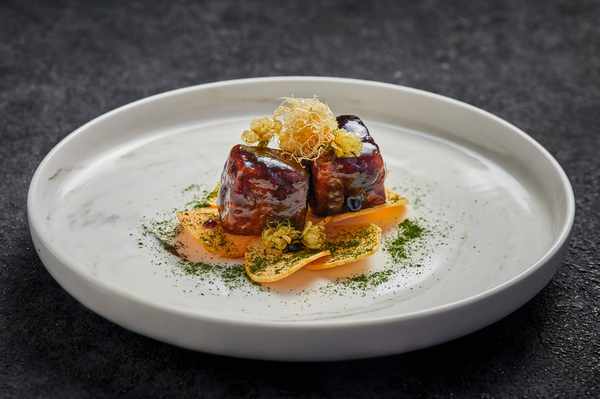 精选澳洲牛肋骨,文火慢炖4小时,搭配春季新鲜采摘的樱桃制作的酱汁,衬托的牛肉愈加的红艳,酱汁尽数渗入柔韧纤细的牛肉中,鲜甜滋味慢慢溢出,牛肉外酥里嫩,丝丝入扣。