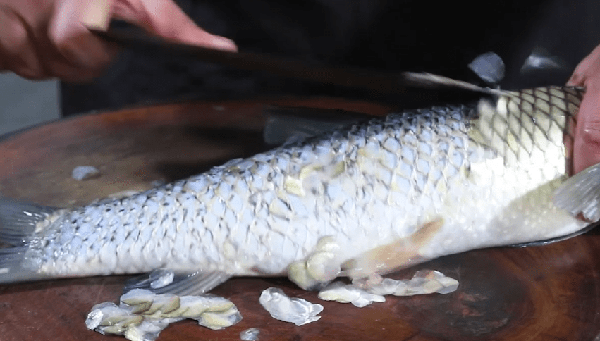 第一步是刮去鱼鳞,清洗鱼的内脏。