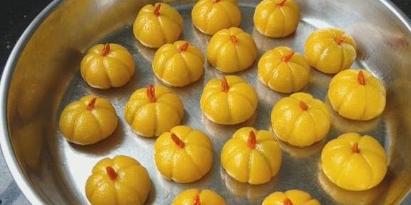这一道特色小南瓜就做好了,喜欢的朋友试一下!自己做的豆沙其实甜度是适中的,用做早餐非常适合,南瓜饼皮所用的糖量可以随自己的喜好来增减,不加也可以,早餐嘛,清淡营养为主。