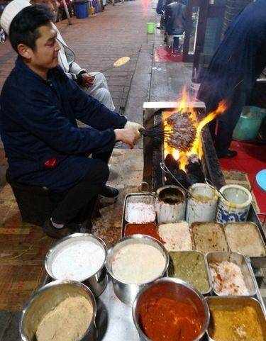 除了各种羊肉串好吃以外,回族烧烤摊烤出来的羊腰子,完全没有腥味。而且许多烧烤摊不是像内地这样用的木炭,而是用的烧红的块煤,铁签子串上羊腰子,抹点儿冻结的羊油,越烤羊油渗透越深,而且肉质也不会老,吃的时候一点血腥味都没有,腰子也不绵,鲜活肥嫩,十分的诱人,就瓣大蒜,如果能再喝口青稞酒,在寒冷的冬夜里真是无比的享受!