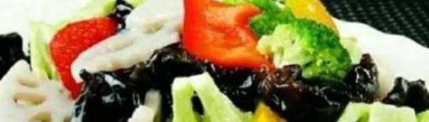 1. 把莲藕刨去皮,均匀切成薄片。青红椒和西蓝花分别切成小块备用。
