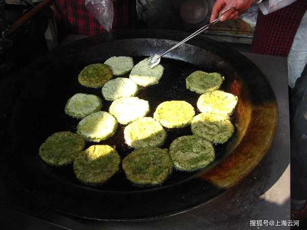 就像每个古镇都有卖“臭豆腐”一样,“草头饼”也是古镇美食小吃里的当家明星,感觉在哪个古镇都是。