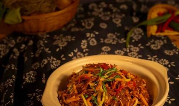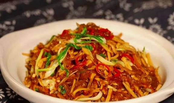 香甜山芋,制成粉丝绩溪炒粉丝中所用粉丝,是当地特产的山芋粉丝。绩溪出产的山芋,香甜可口,是高热量、低蛋白的保健食品。品质优良,淀粉含量高,口感甜,制成的粉丝晶莹剔透、弹性十足。从一只只山芋到一根根粉丝,中间要经历十几道工序,其中蒸粉和刨丝是最重要的两道工序,而这两道工序也是最难最累的。虽然现在有机器刨丝,既省力速度又快,但跟手工刨出来的粉丝味道是没法比的,纯正手工制作的粉丝具有好吃爽口、粉味纯正、筋道耐煮等特点。在绩溪县板桥头乡玉台村有这样一位老手艺人陈贵山,18岁开始学粉丝制作手艺,如今他已是花甲之年,可却依然坚守在绩溪手工粉丝制作的路上,老手艺人也一直强调“现在做的不仅仅是粉丝,更是一种回忆、一种文化、一种传承。“美味佳肴,绩溪炒粉丝在绩溪,无论是普通妇女还是高级厨师都会制作绩溪炒粉丝,这道菜肴充分体现了徽菜醇香美味的特点,看似简单的绩溪炒粉丝实则考究,在烹饪的时候还是得恰到好处的把控好火候。