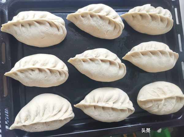 第七步:拿一個包子皮,放上餡料,順著邊捏緊,呈麥穗狀。