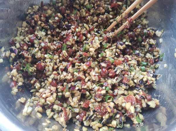 2,茄子一定要用鹽去除多餘的水分以及去除茄子的味道,不然調出的餡料水分太多,沒法包,味道也不好。