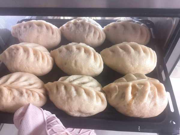 第八步:全部包好以後放到蒸盤上,進行二次發酵,靜置發酵大約15分鐘。只有二次發酵的包子,外皮才會特別暄軟不發硬。