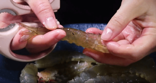 1、用盐水洗净虾后,用剪刀剪去虾头和虾腔,用手轻轻挤出虾头的黑色部分,同时去除尾部的虾线。然后把虾的脚切掉,然后把虾放进水里再洗几次。洗涤后,控制水分。在所有虾的背面剪一个洞,使虾的味道更好,这样虾就可以加工了。