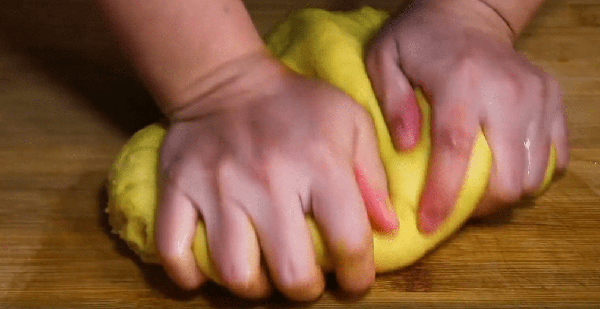 3.揉面时,用类似洗衣服的方法揉面,使其有肌肉。