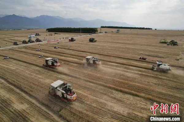 图为西安市长安区王曲街道、太乙宫街道和杜曲街道神禾塬小麦机收场景。 西安市农业农村局供图